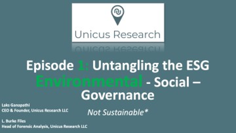 Unicus Founder & CEO, Laks Ganapathi kicks off a four-part series digging deeper into the ESG universe starting with the Environmental. She sits down with L. Burke Files, Head of Forensic Analysis for Unicus Research LLC to discuss the ESG challenges of clarity, measurement, and sustainable progress.