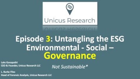 Unicus Founder & CEO, Laks Ganapathi kicks off a four-part series digging deeper into the ESG universe starting with the Environmental. She sits down with L. Burke Files, Head of Forensic Analysis for Unicus Research LLC to discuss the ESG challenges of clarity, measurement, and sustainable progress.